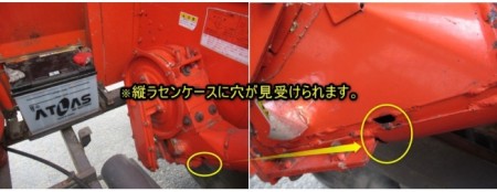 | 詳細 | 〇25馬力 〇クローラ状態:右側クローラーにキレが見受けられます。 〇クローラサイズ:420×45×90WC 〇クローラ幅:約420mm 《機能》 〇こぎ深さ(自動/手動) 〇稲麦調整 〇パワステ 《付属品》 〇デバイダ×2 《破損・欠品》 *シートに大きなキレ、穴が見受けられます。 *縦ラセンケースに穴が見受けられます。 *グローランプが点灯致しません。 |