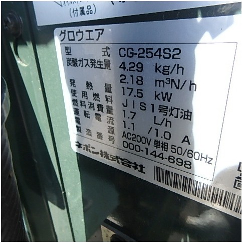 ネポン グロウエア 光合成促進機・電源:200V・燃料:灯油