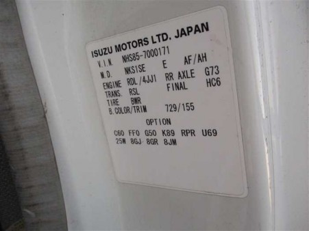 | 詳細 | ENGINE TYPE:4JJ1 TRANSMISSION:5 SPEED MANUAL LOADING CAPACITY:1500kg NET WEIGHT:2820kg GROSS WEIGHT:4485kg 走行距離293,041 km 排気量2,990 cc ハンドル右 トランスミッションMT 燃料ディーゼル 駆動方式 4WD <運転席エアバッグ><パワーウィンドウ><エアコン><パワーステアリング> 車両サイズ 169cm×481cm×199cm=16.18m3 |