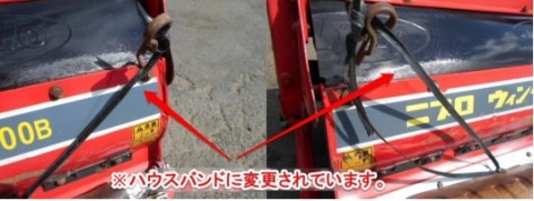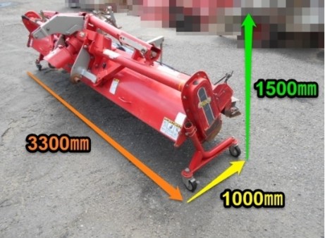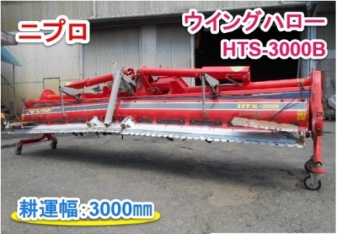 ○作業幅:3000㎜☆トラクター付けての動作確認は出来ております。☆元の持ち主様によると50馬力のトラクターでご使用されていたとの事です。▲サイドレーキ開閉の為の紐が無く、ハウスバンドで繋がっている為、直接開閉をする必要があります。