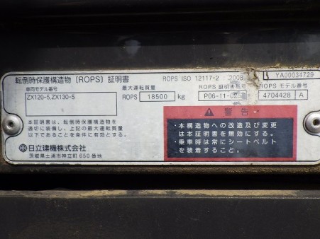 ユンボ(油圧ショベル) 日立建機 ZX120-5B - 商品番号 30372
