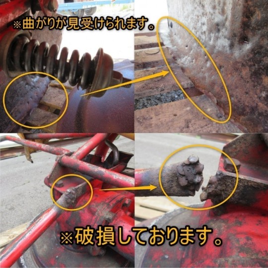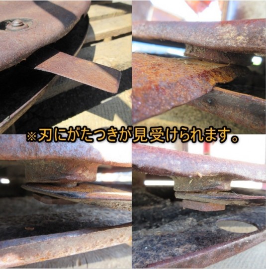 〇前の持ち主様はクボタGM60にてご使用されておりました。 《破損・欠品》 *溶接跡が見受けられます。 *破損が見受けられます。 *カバーに破れが見受けられます。 *刃にがたつきが見受けられます。 *曲がりや穴、亀裂が見受けられます。