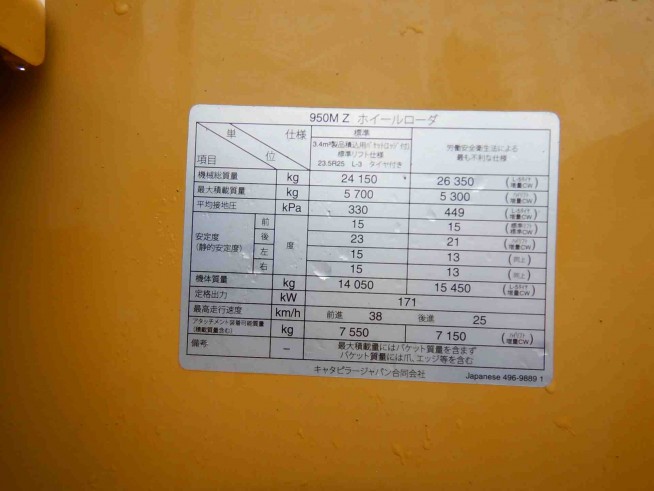 ホイールローダー(タイヤショベル) CAT(キャタピラー) 950MZ - 商品番号 32764