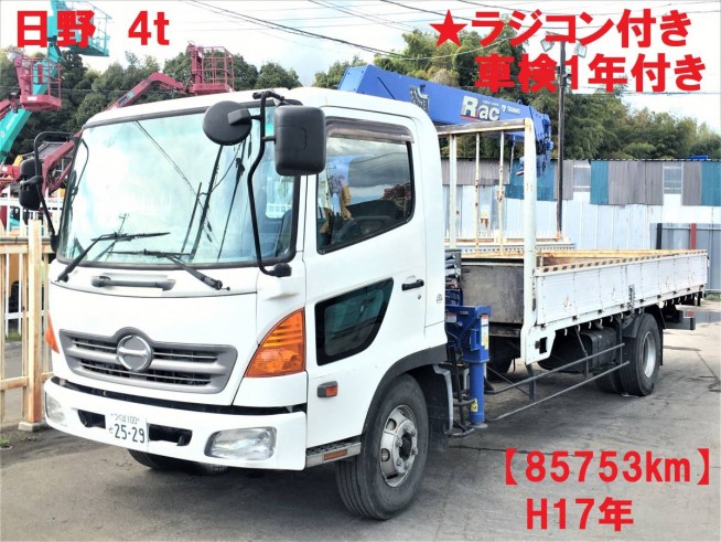 詳細 日野 【85753km】 ★車検1年あり★ラジコン付き★ 4段クレーン仕様 4tユニック