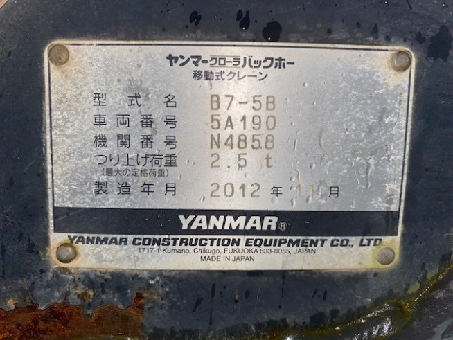 ユンボ(油圧ショベル) ヤンマー B7-5B - 商品番号 40058