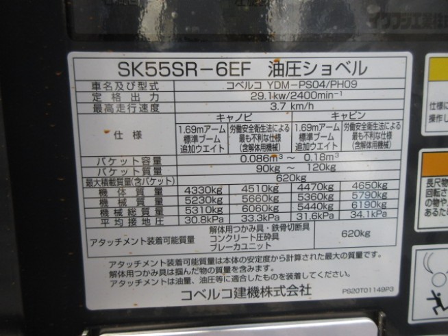 ミニユンボ(ミニ油圧ショベル) コベルコ SK55SR-6E - 商品番号 40948