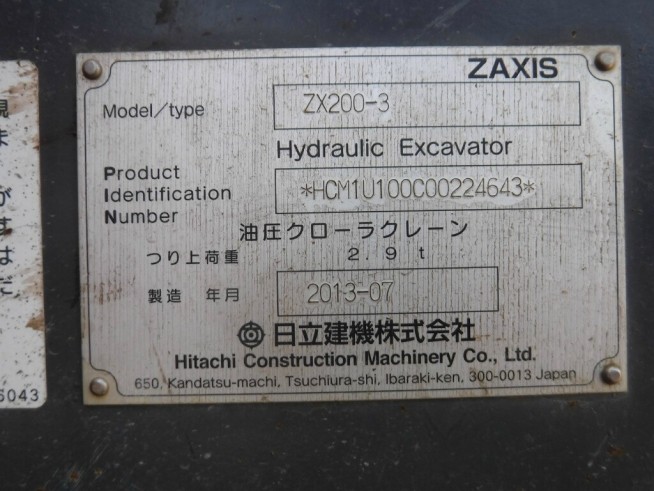 ユンボ(油圧ショベル) 日立建機 ZX200-3 - 商品番号 41134