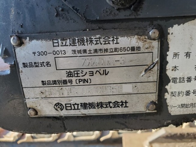 ミニユンボ(ミニ油圧ショベル) 日立建機 ZX40UR-3 - 商品番号 43423