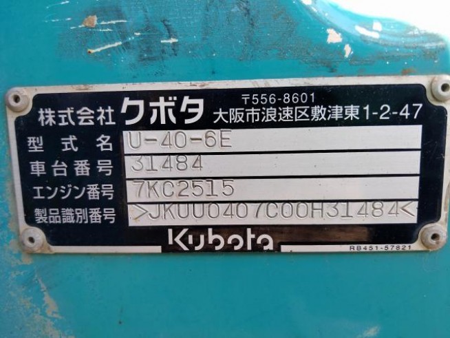 ミニユンボ(ミニ油圧ショベル) クボタ U-40-6E - 商品番号 43783
