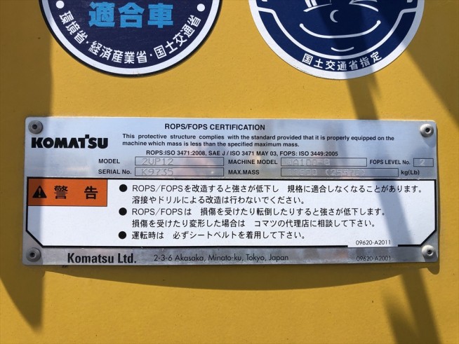ホイールローダー(タイヤショベル) コマツ WA100-8 - 商品番号 44339