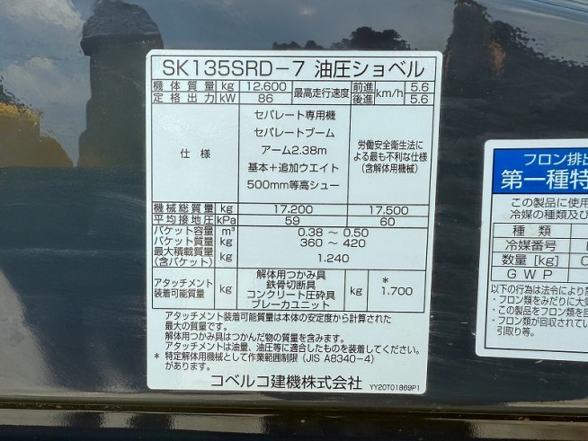 ユンボ(油圧ショベル) コベルコ SK135SRD-7 - 商品番号 47586