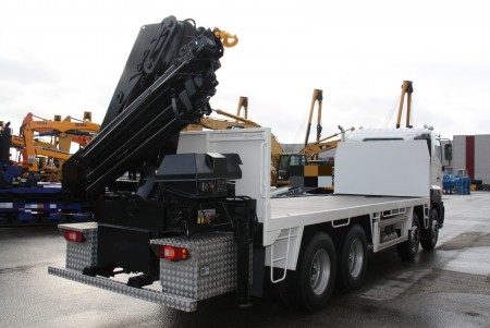 | 詳細 | Hino 700FY with crane, 2007 8x4 Hino 700 series, 420HP, 221,464 kms, body with twist locks, HIAB 220C-5 crane fitted with 5 extensions c.w. radio remote control and rear legs, airco, upright exhaust, 16 speed manual gearbox, NEW Pirelli 295/80R22.5 tyres fitted, reverse camera, aluminium tool lockers, right hand drive. Truck is workshop tested and repaired. Truck is in very good and clean condition. Inspections are welcome! |