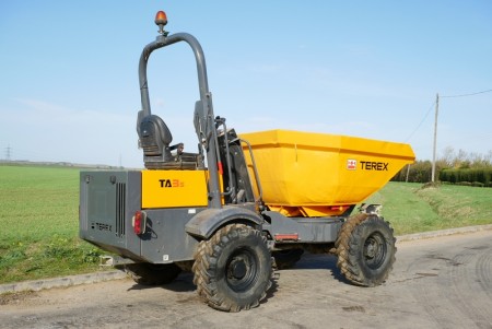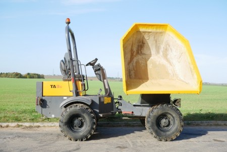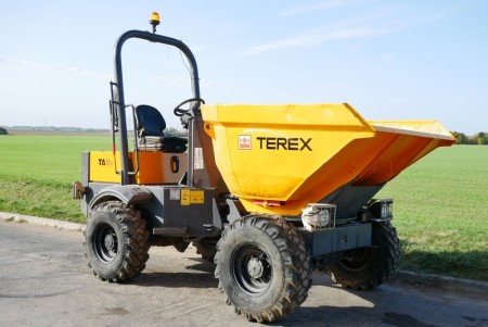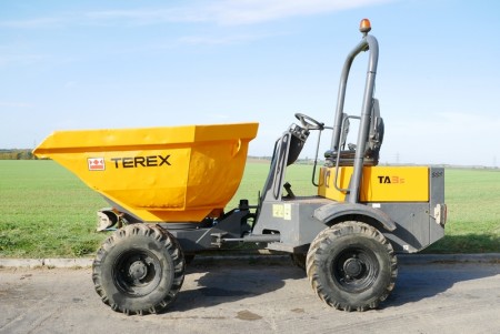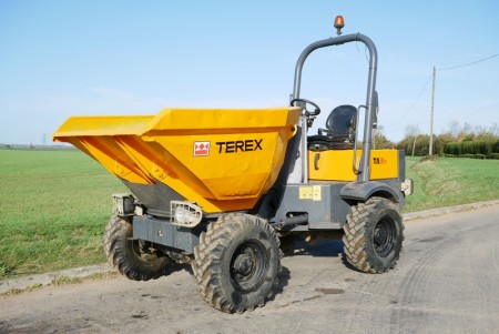 Used Terex dumper, hydro static drive / gearbox, 3 ton payload, swivel skip tip, 4x4 drive, foldable rops bar, road registered with road lights, 2 speed drive, Kubota engine, CE marked.